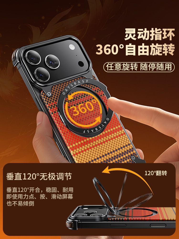 Luxury Carbon Fiber for iPhone 17 Pro Max Case with Magnetic Rotating Stand Drop-Proof Single Mobile Phone Case