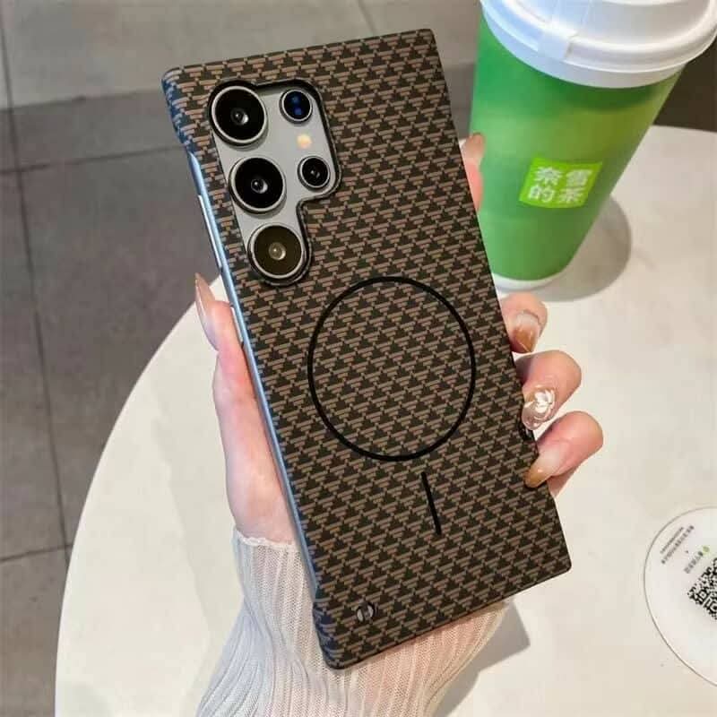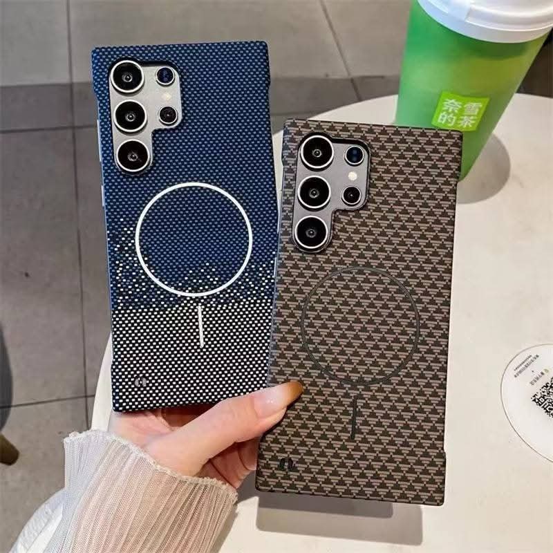Frameless Carbon Fiber Magnetic Wireless Charging Case For Samsung Galaxy S25,S24,S23 Ultra Matte Ultra Thin Hard PC Cover
