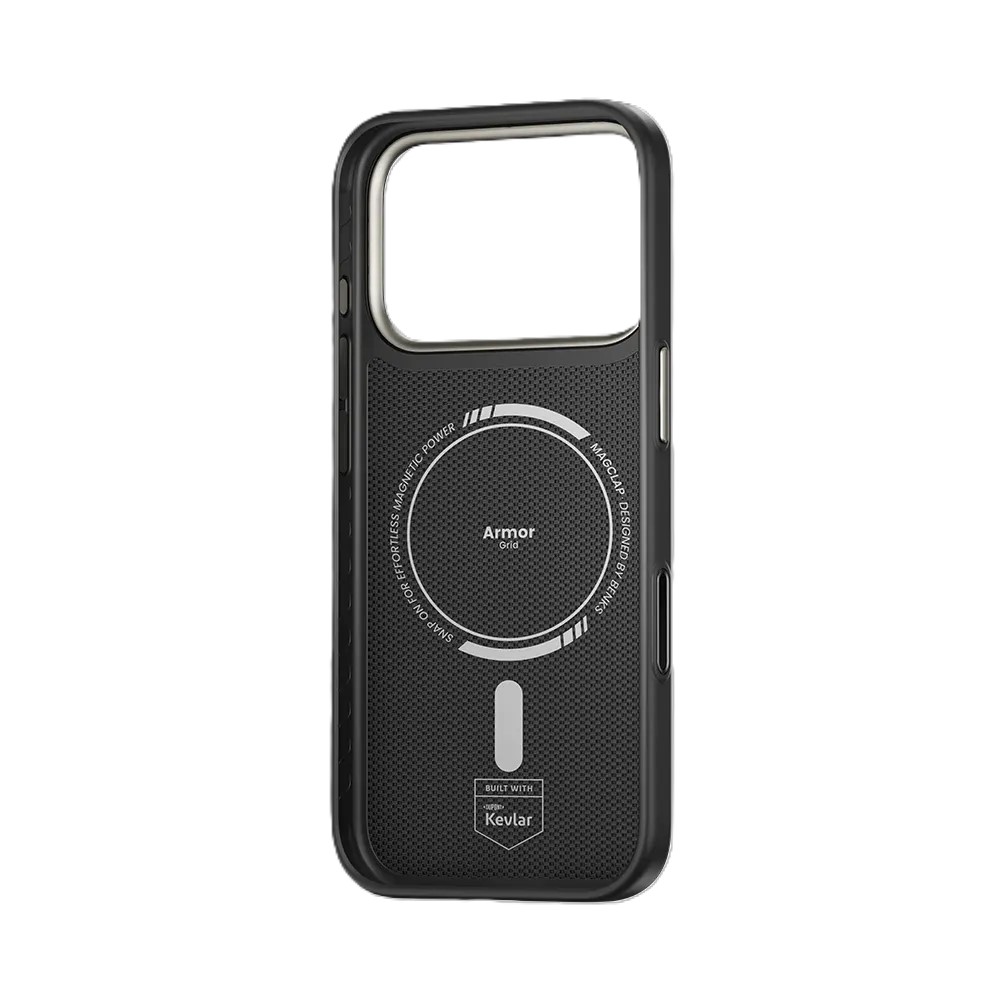 Rooted in geometric form and refined through traditional craft, ArmorGrid ArmorPro Case is woven from DuPont™ Kevlar® fiber with the Jiaoluo weaving technique. This creates a texture that blends resilience with artistry, embodying protection through design. In Obsidian Black, it reflects timeless strength—subtle, commanding, and enduring.