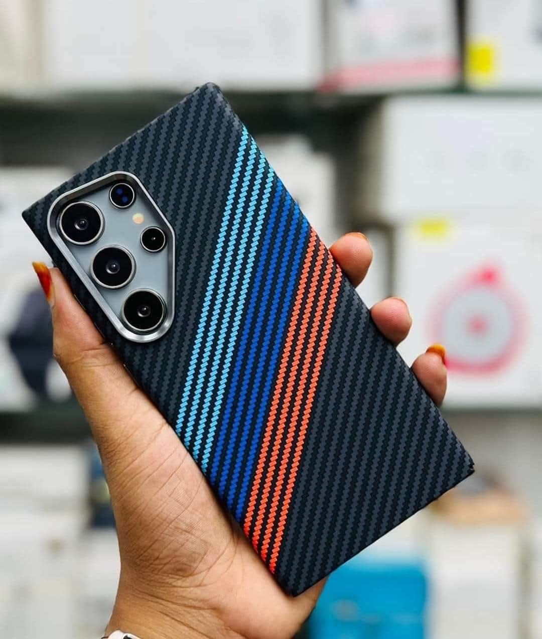 Luxury Carbon Fiber Texture MagSafe Case For Samsung S25 S24 S23 Ultra Alloy Lens Shockproof Charging Magnets Cover Hard Shields