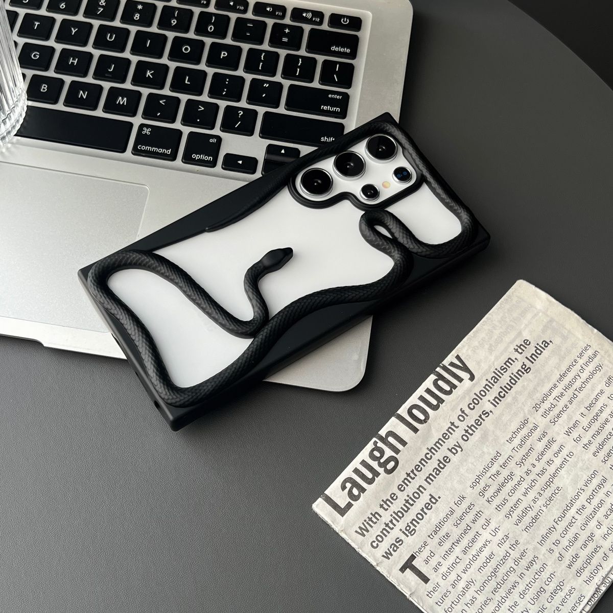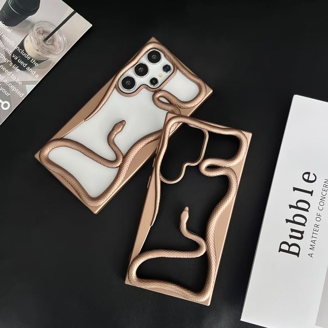 Plating 3D Hollow Snake Phone Case For Samsung S25 S24 S22 S23 Ultra FE A56 A36 A26 A16 A06 A55 Fashion Soft Shockproof Cover