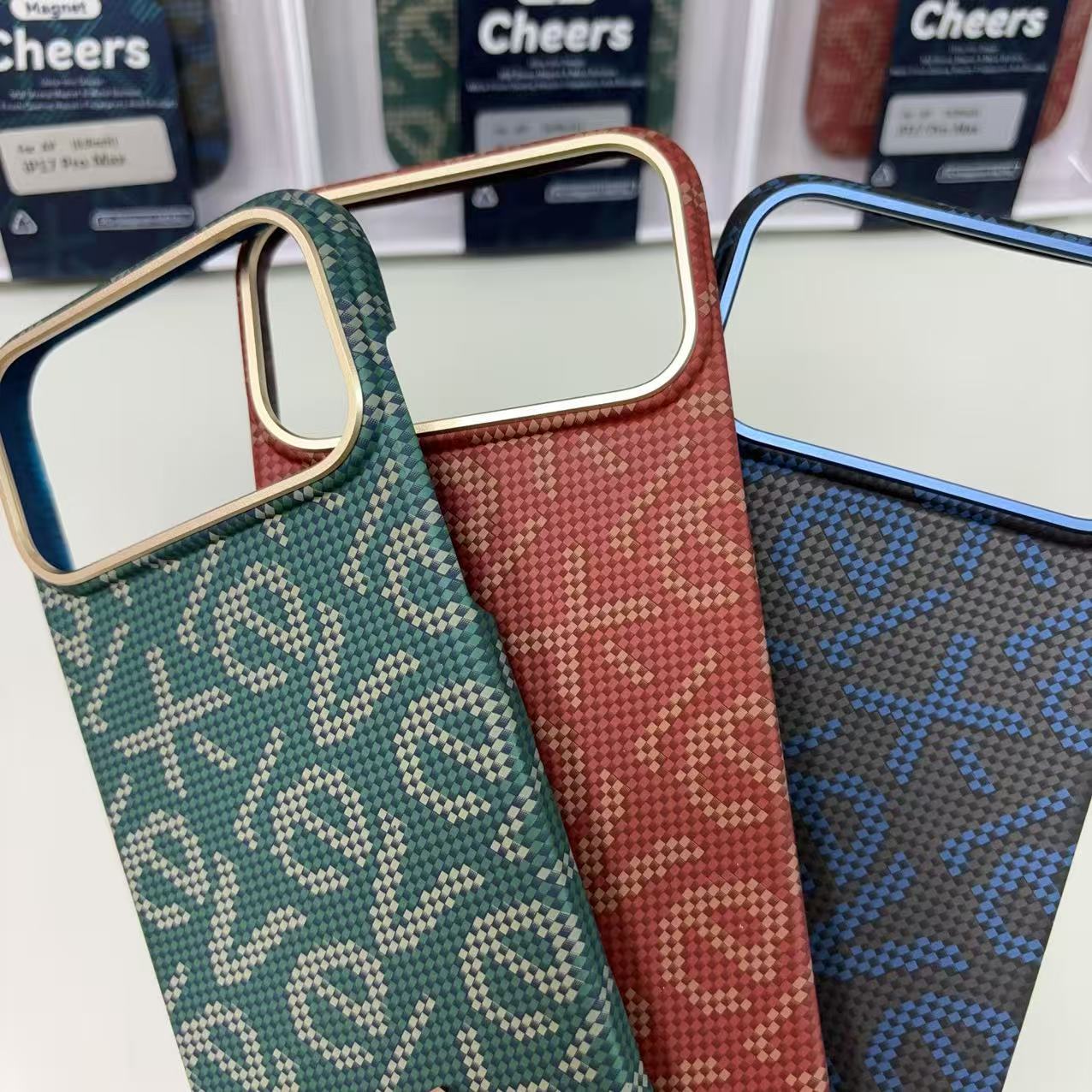 Carbon Fibre Texture Wireless Charging MagSafe Phone Case for iPhone . Alloy Lens Ultrathin Hard PC Cove
