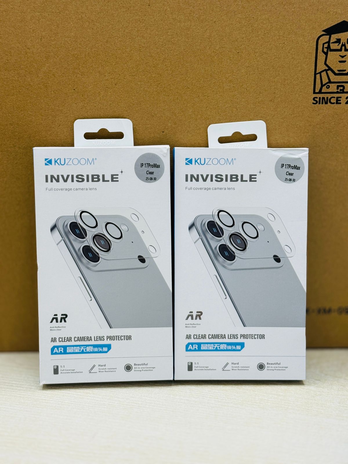 The Kuzoom Invisible Full Coverage Camera Lens Protector for iPhone 17 Series offers edge-to-edge protection without altering the look of your phone. Made from ultra-clear, scratch-resistant glass, it guards your camera from scratches, dust, and drops — all while preserving original photo quality. Slim, sleek, and bubble-free.