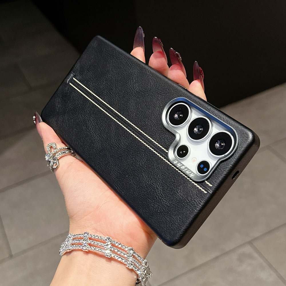 Retro PU Leather Texture Magsafe Phone Case For Samsung Galaxy S25 Ultra ,S24 Ultra . Luxury Metal Lens Wireless Charging Armor Cover